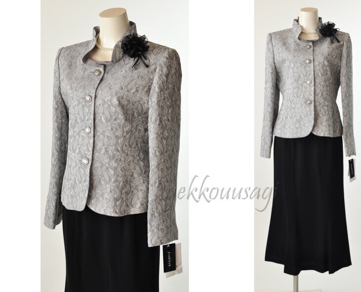 マスク10枚プレゼント 送料無料 9号/11号/13号/15号 高品質 スタンドカラーシャンタンジャケット&ウエストゴム入りロングスカート黒2点セット 結婚式 卒業式 入学式 ママスーツ 母スーツ ベージュ グレー ブラック 母の日 M/L/LL/3L 980J-5447(2600)(au2f6n)